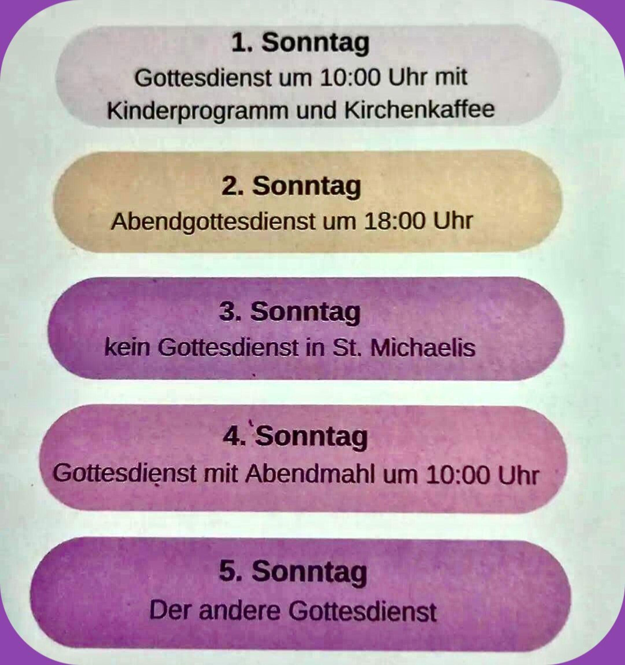 - Am dritten Sonntag gibt es keinen Gottesdienst.